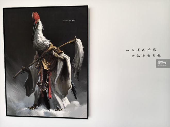 就在这片展区最后的一面墙上,挂着一幅鹤仙人的画。据说,这幅画是官方埋下的一颗彩蛋,有心的玩家可能会猜到一些背后的意思。