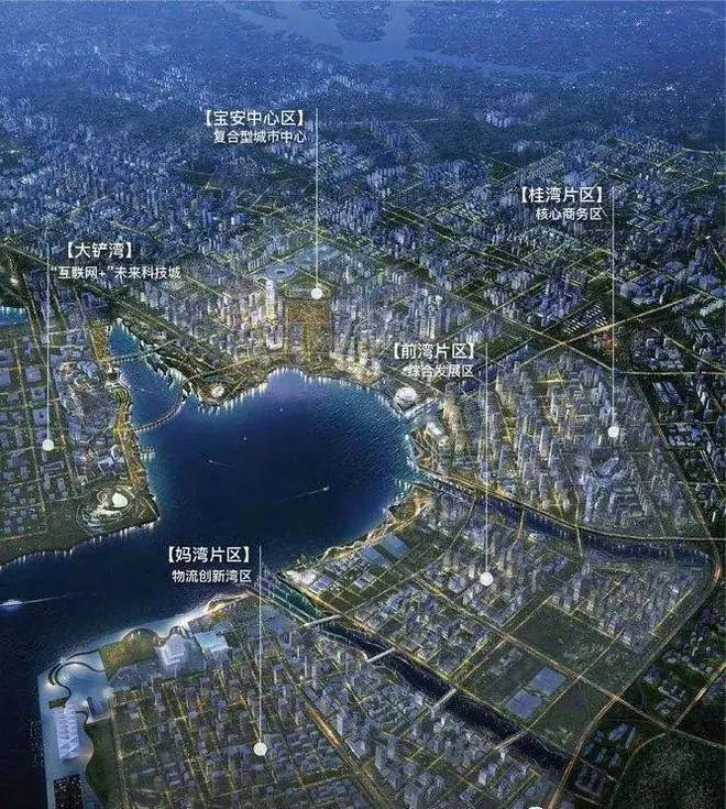 宝安中心规划用地约15.06平方公里,重点发展总部经济,打造集中体现宝安国际化、现代化城区形象的现代服务业核心区。以三区二轴一环,启幕前海。