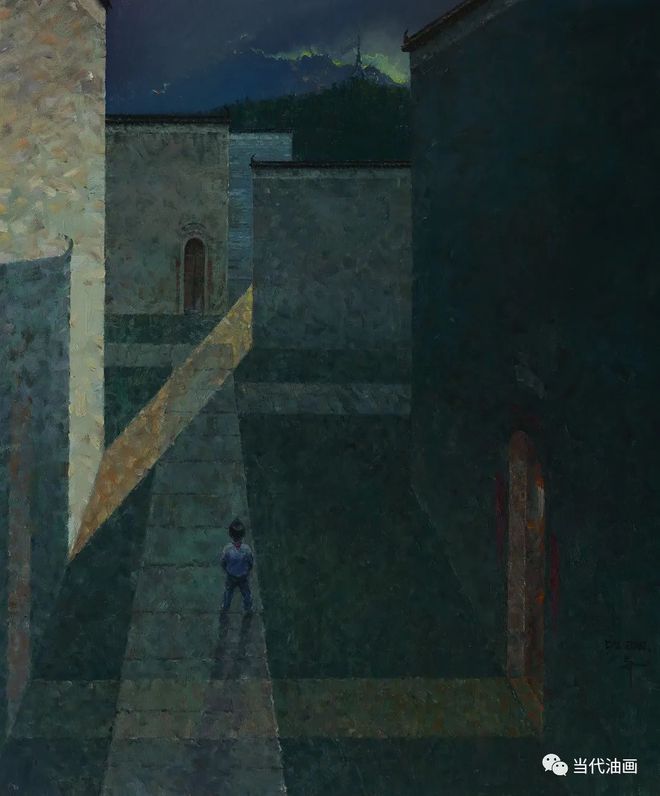 老蔡的童年是幸运的,自出生便居于其中的古宅。然而幼时的记忆在他过早开始的外出飘泊的生涯里,被刻意隐藏起来。从江西到河北再到西安,现居郑州,每一处居停之地都为他的生命之舟提供了夹裹向前的洪流之力,可他直到近年他才寻找到自己的创作的基点——用他自己独特的油画语言自觉地深挖向自己的生命之始,那个他视为创作源泉的丰富且独特的童年“阴郁”场境。