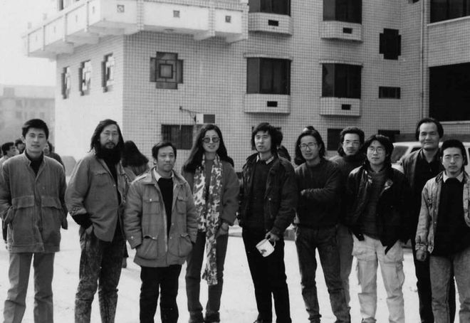 1988 年,参加“黄山会议”代表合影,从左至右:耿建翌、王广义、栗宪庭、廖雯、张培力、吴山专、张捷、孟禄丁、郑胜天、魏光庆