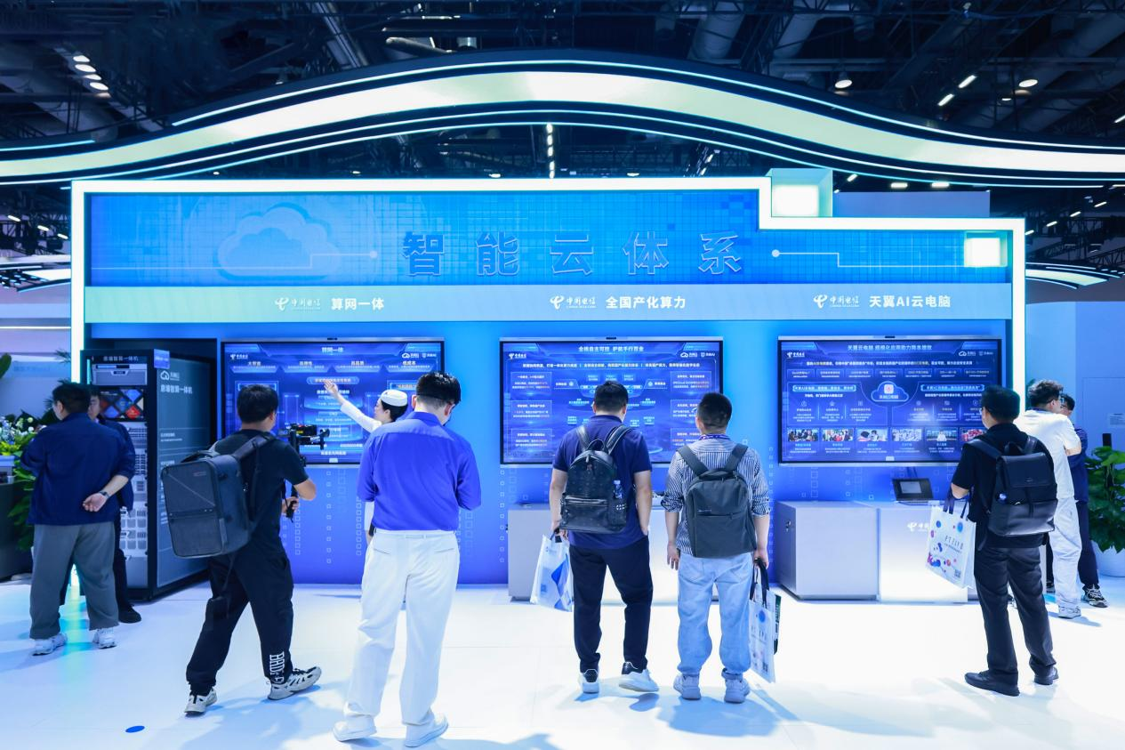 此外,“全国产化算力”展项也备受关注,紫金算力架构的国产化硬件、天翼云自研CTyunOS操作系统等实物展示,标志着中国电信已构建起从底层硬件到上层应用的全栈自主可控能力。同时,“天通+”手机与汽车直连卫星产业生态、“6G全域智惠网络”前沿探索、服务亿万家庭的“美好家·算力中心”等创新成果,共同构成了数字信息基础设施智能化新图景。