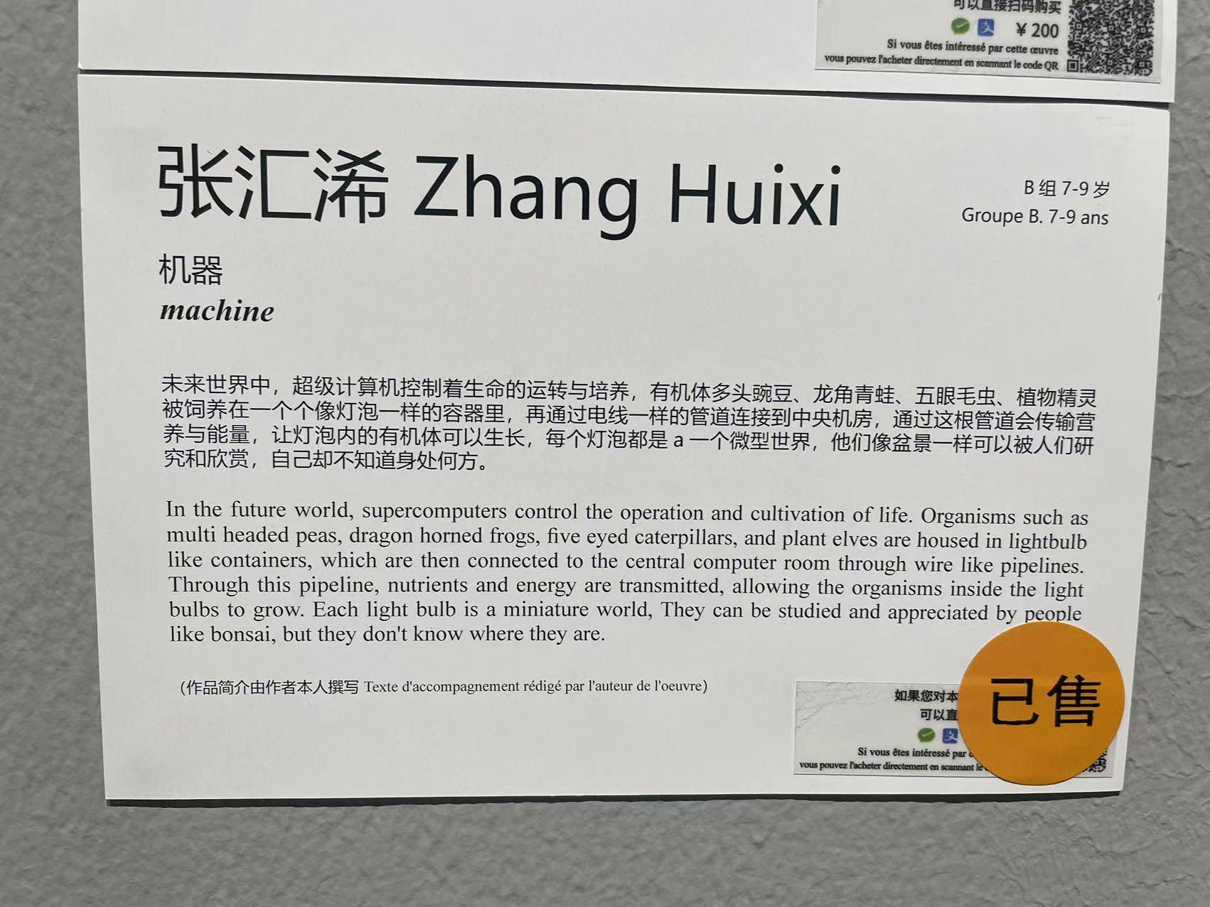 北京法语联盟法方校长白恩兰在开幕致辞中介绍了本次赛事的情况,谈及第三届大赛的亮点,她说到:“这是我们首次尝试在专业画廊中再为小艺术家们做一次展览,这对老师、小艺术家和主办方来讲都迈出了一大步——我们通过把他们的作品带入专业画廊机构,鼓励他们进一步了解艺术、艺术市场和感受艺术家的真实身份体验。”据悉,在与家长和小艺术家充分沟通后,部分参展作品以200元每幅的作品进行售卖,营收将全部返还给小艺术家家庭,截至目前已有二十余幅作品被艺术爱好者买走。PG平台官方网站