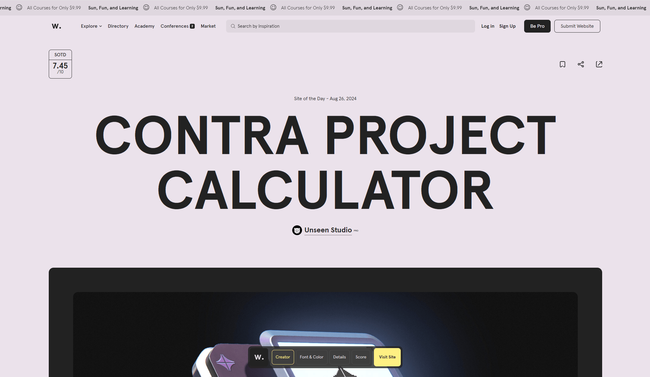 这个被誉为 “网页设计界的奥斯卡” 的平台,通过严格的评选流程,确保了获奖作品的高质量和创新性。它每天评选出的 “Site of the Day” 不仅是对设计师技艺的认可,更是对其创意和版式设计、网页配色等方面贡献的肯定。评选过程中,专家和用户从设计、易用性、创意和内容等多个维度对作品进行评分,最终选出平均分最高的作品。这样的评选机制不仅保证了获奖作品的全面性,也为设计师们提供了一个展示才华、相互学习、激发灵感的国际舞台。
