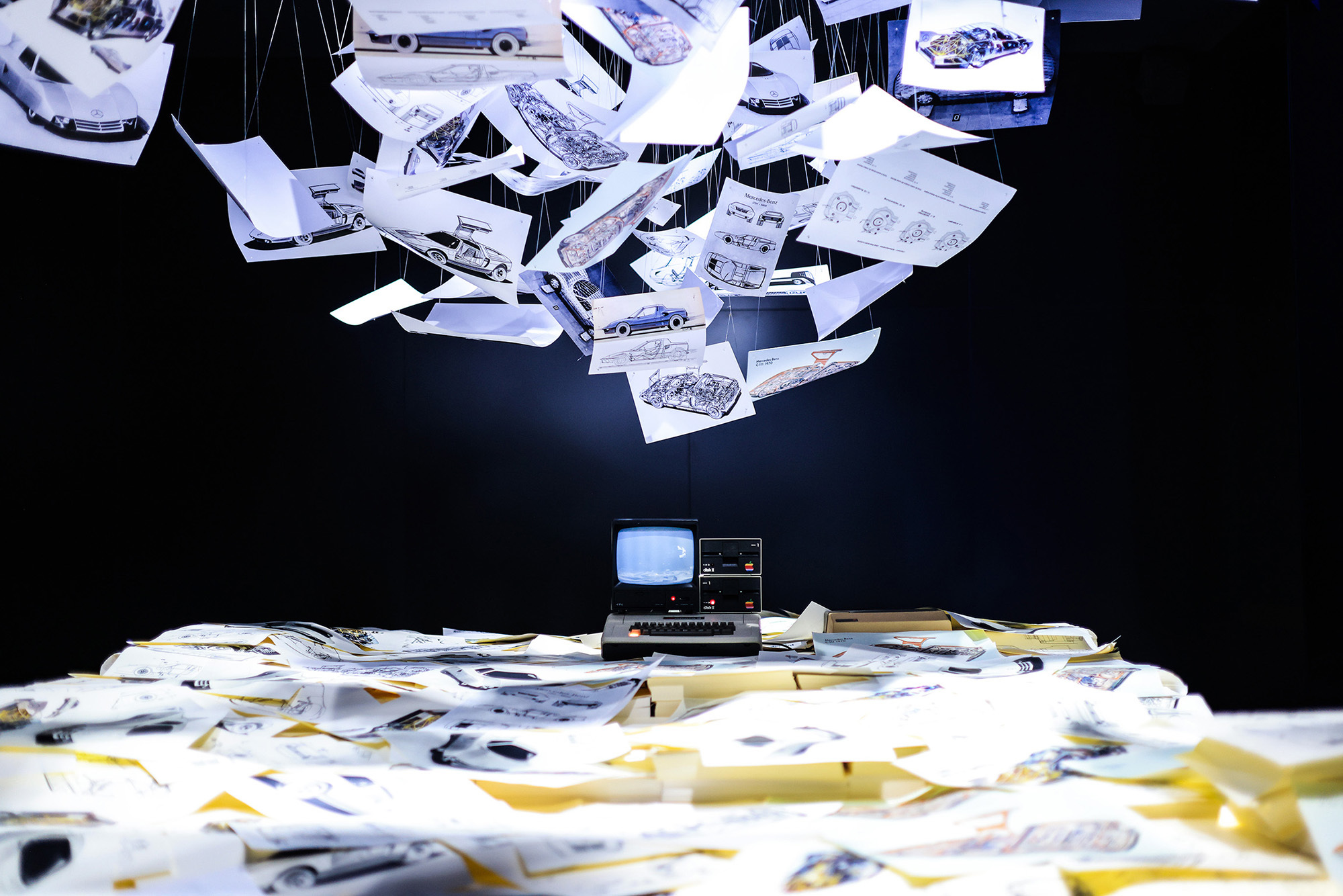 值得一提的是,C 111实验车是世界上第一辆完全在计算机上设计的汽车,创造性的技术使其开发周期缩短约4个月。“创想之翼”以艺术场景呈现科技赋予美学设计,无数设计稿从一台70年代的电脑中飞扬而出,预示着汽车工业数字化设计风潮的来临。