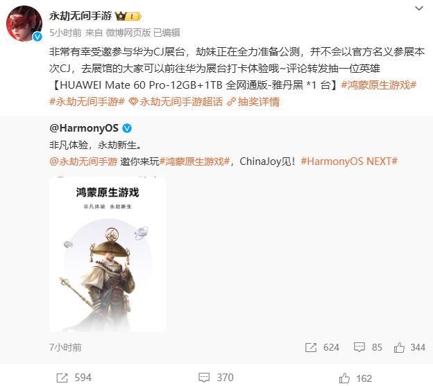 《永劫无间》手游官方表示,正在全力准备公测,不会以官方名义参展本次 CJ,玩家可前往华为展台打卡体验。