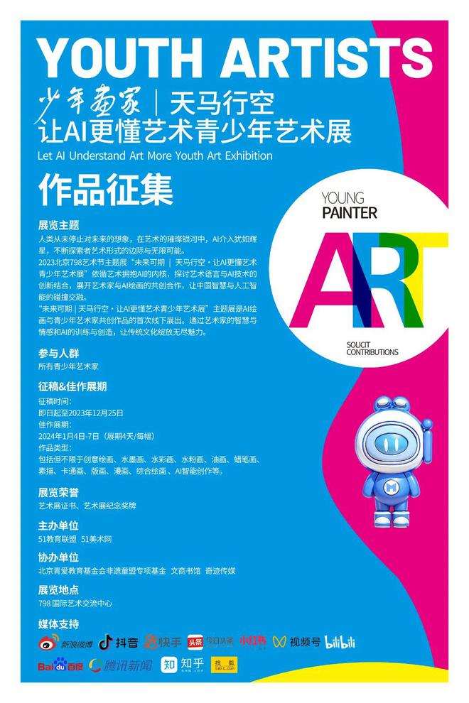 在这个人工智能与艺术交织的时代,我们即将迎来一场前所未有的视觉盛宴。798国际艺术交流中心荣幸地宣布,将于1月4日至1月7日举办“天马行空·让AI更懂艺术”青少年艺术展。在这个展览中,我们将呈现一系列富有创造力、展示了人工智能与青少年艺术家合作潜能的作品,探索艺术的无限可能。