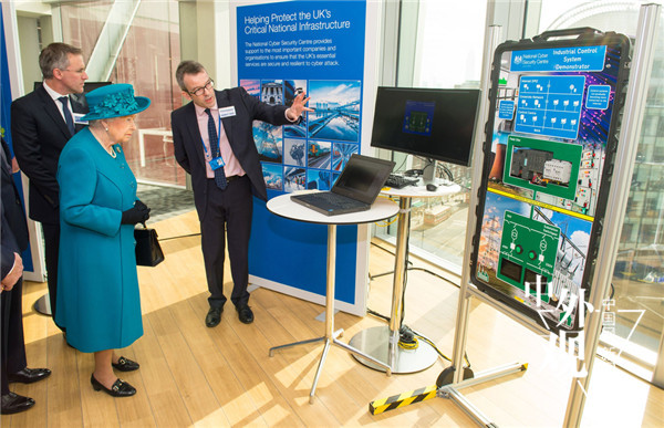 当地时间2017年2月14日,英国伦敦,英国女王伊丽莎白二世出席国家网络安全中心揭幕仪式。视觉中国