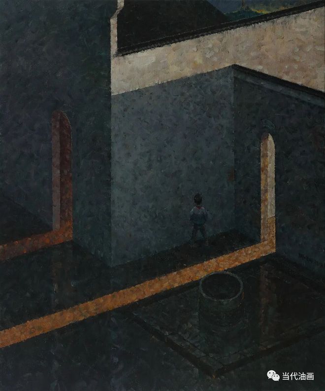 老蔡的童年是幸运的,自出生便居于其中的古宅。然而幼时的记忆在他过早开始的外出飘泊的生涯里,被刻意隐藏起来。从江西到河北再到西安,现居郑州,每一处居停之地都为他的生命之舟提供了夹裹向前的洪流之力,可他直到近年他才寻找到自己的创作的基点——用他自己独特的油画语言自觉地深挖向自己的生命之始,那个他视为创作源泉的丰富且独特的童年“阴郁”场境。