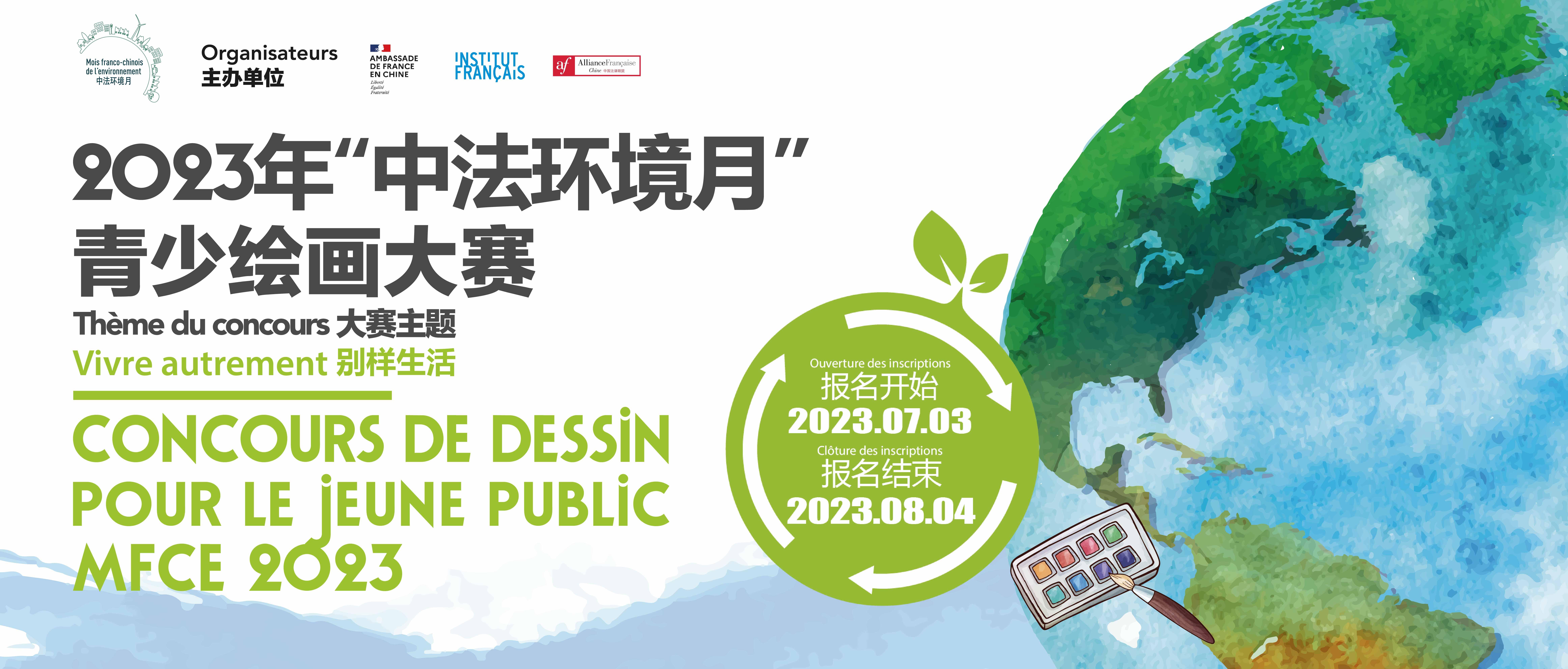 今年的第三届“中法环境月”青少绘画大赛由法国驻华大使馆和中国法语联盟共同主办,北京法语联盟总协调。大赛奖金由北京法语联盟设立的“法语人才培养与交流基金”赞助;中法环境月主题法语课由中国法语联盟提供;画材奖品由康颂品牌赞助;北京语言大学、中国网、798艺栈画廊、康颂、Fotoo也对本届赛事提供了支持和帮助。