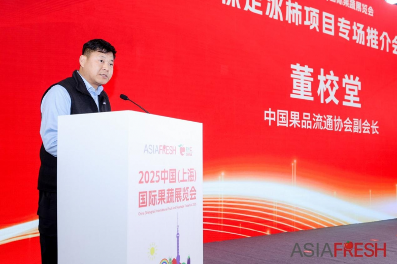 活动伊始,中国果品流通协会副会长董校堂发表致辞。他高度肯定保定依托北纬38°–40°黄金生态带的独特优势,通过科技赋能传统农业,推动冰柿产业向标准化、品牌化、市场化加速转型。他特别指出,以“企业+合作社+农户”模式整合资源,不仅保障了产品品质稳定,更让广大果农切实分享产业链增值收益。董校堂强调,保定冰柿融合传统风味与现代健康消费理念,正迎来前所未有的发展机遇,呼吁各方借助国际展会平台,助力优质土特产“出圈出海”,服务乡村产业振兴大局。