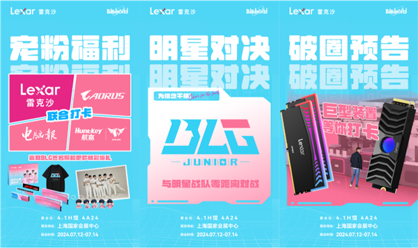 本次活动雷克沙与电脑报、技嘉、航嘉品牌强强联手,打造出一个充满科技魅力的联合展台。联合展台不止有诸多重磅新品等你体验,互动打卡集章众多抽奖环节等你参加,价值3499元BLG联名礼盒、Lexar® ARES PCle 4.0固态硬盘和Lexar® ARES RGB DDR5内存条等丰厚奖品等你来拿, 还有Coser小姐姐同你热舞!致敬次元文化,预见未来科技趋