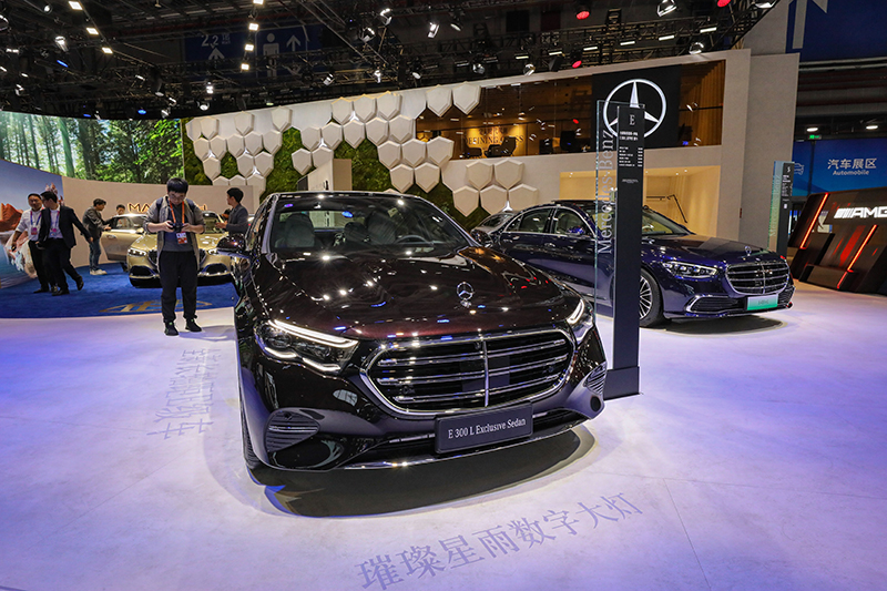 11月5日,在第六届进博会汽车展区,梅赛德斯-奔驰全新长轴距E级车E300L轿车迎来中国首展。