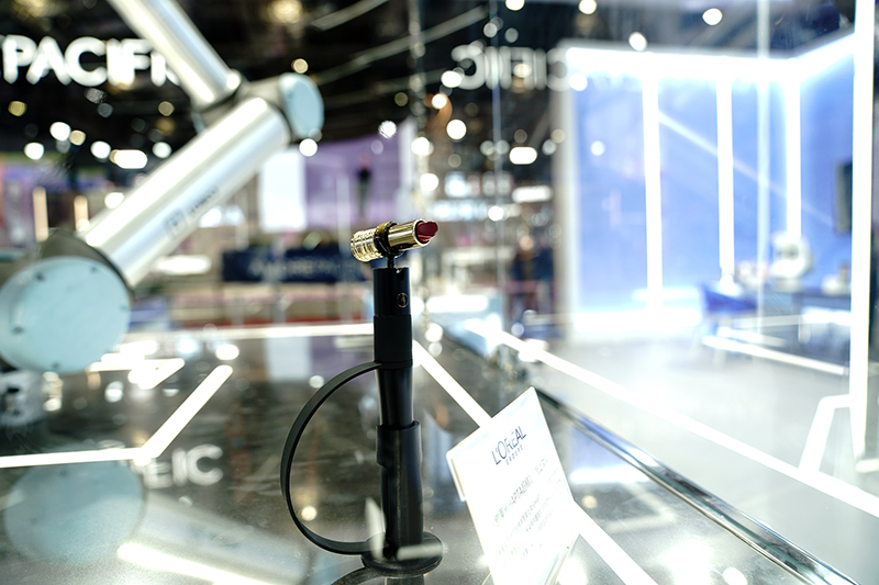 11月5日,在第六届进博会消费品展区,欧莱雅展出全球首款手持式超精准智能上妆仪,该产品专为手臂活动能力受限的消费者设计。