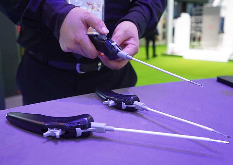 11月5日在第六届进博会医疗器械及医药保健展区Arthrex展台拍摄的半月板全缝线缝合系统。