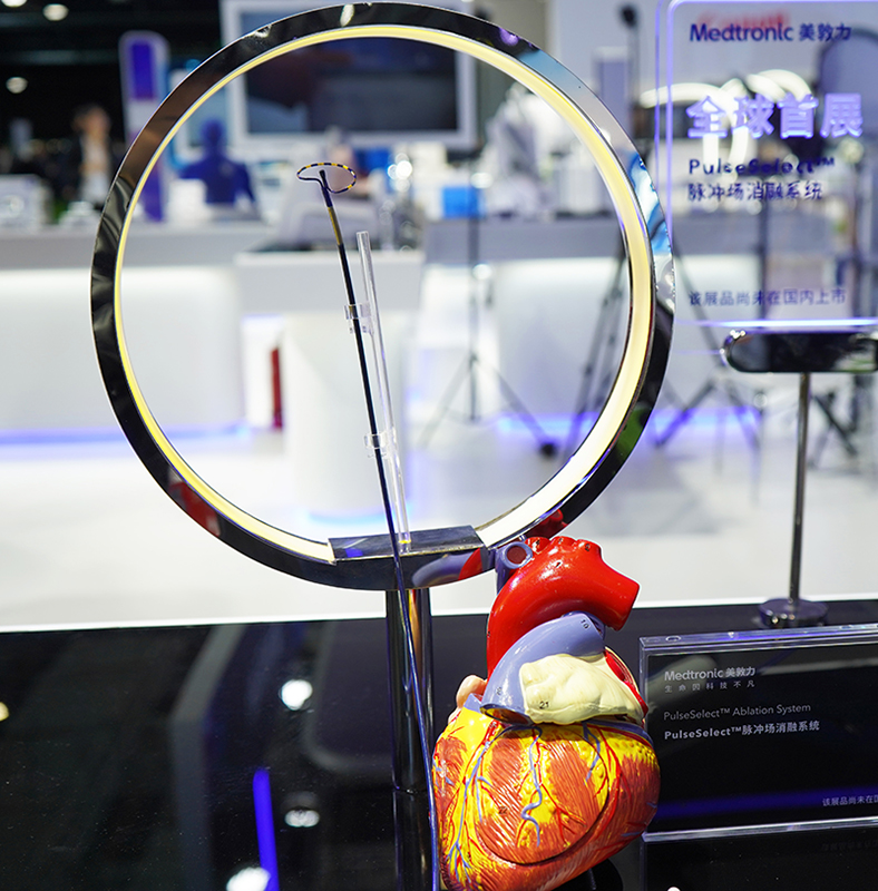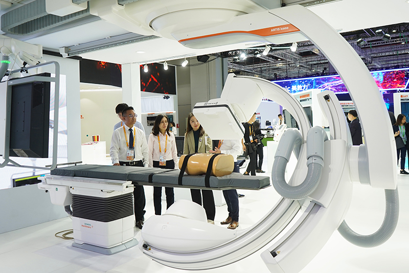 11月5日在第六届进博会医疗器械及医药保健展区西门子展台拍摄的全球首款量子能谱血管造影系统。