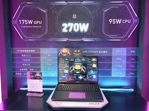 除了品牌墙,微星在极致效能展区微星通过拆解自家旗舰泰坦18 Ultra 2024展示了自己强大的散热模组,正是因为对效能不断探究,才能铸造出这款能够释放270W功耗的产品。泰坦18 Ultra 2024也毫无疑问占据了C位,共BW上的年轻玩家进行体验,这款产品配置十分强大,配备酷睿i9-14900K处理器以及RTX 4090显卡,配备一块4K分辨率18英寸Mini LED釉月屏,120Hz超高刷新率、100%DCI-P3专业广色域显示,在满载270W功耗输出加持下画面表现以及性能都无可挑剔。