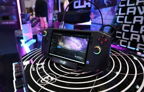 在现场还看到了微星Claw掌上游戏机,作为市面上首款酷睿Ultra掌机,微星Claw前段时间刚刚宣布降价,而这款产品拥有Ultra 5和Ultra 7两个版本,内置双风扇,提供7英寸的IPS触摸屏,亮度可500nits,显示效果出众,同时在游戏表现上,因为Intel在持续优化驱动,微星Claw掌上游戏机性能也越来越强。