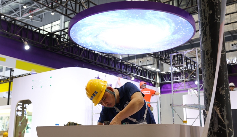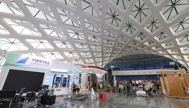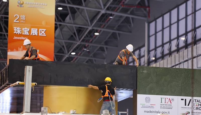 近日,第四届中国国际消费品博览会展台搭建工作在海南国际会展中心有序推进。据悉,以“共享开放机遇、共创美好生活”为主题的第四届中国国际消费品博览会将于4月13日至18日在海南省举行,将有来自59个国家和地区的3000多个品牌参展。