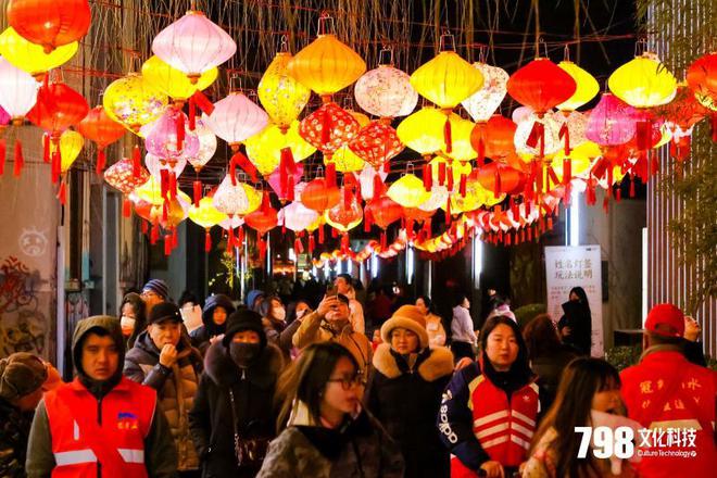 同时,包豪斯广场的“转动双眼”走马灯、798中一街及中二街的千盏彩灯装置,以及797路旋转楼梯的“春风得艺”打卡墙等共同构建了一个光影交错的艺术空间,让年轻游客在漫步园区时,感受蛇年新春和元宵佳节的浓厚氛围和休闲意趣。