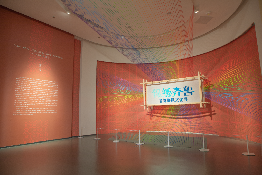 展览简介:展览分为锦绣之源、锦绣之流、锦绣之传三部分,以织绣作品、互动展项、沉浸体验为载体,全方位呈现山东地区织绣技艺的演变轨迹、艺术风貌,及其对中华文明的影响与现代新生,深度挖掘齐鲁文化基因。展览同时聚焦女性对社会经济发展的贡献,通过生活到文化的整体展示,帮助观众理解山东织绣传承脉络与文化发展,强化新时代工匠精神。